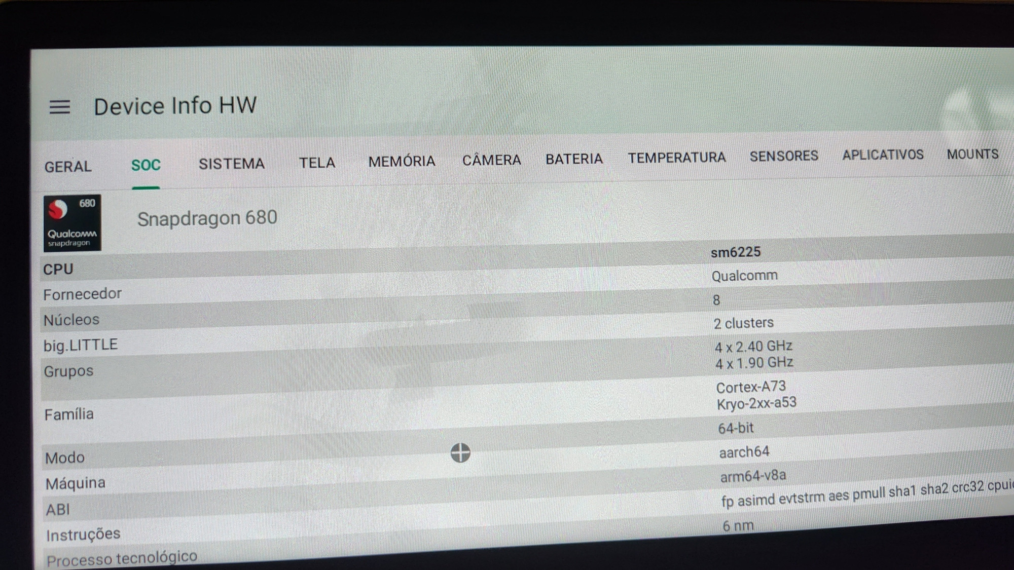 I will provide some photos with the device specifications. I used the Info HW app to obtain this information.