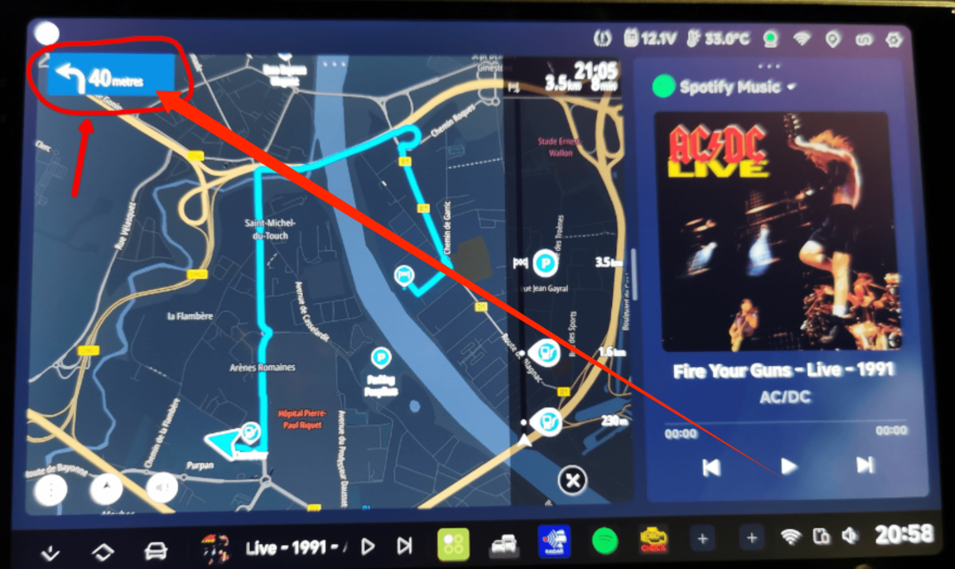 JhonnyD Hi Jhonny, it is actually what I have done. I have totally disabled the Navigation Widget (I am using minimal mode), and I have set up a task that launches TomTom 12 seconds after the WiFi of the Dudu7 is connected to my phone hotspot. That way I have the navigation prompts on the top left correctly. 🙂