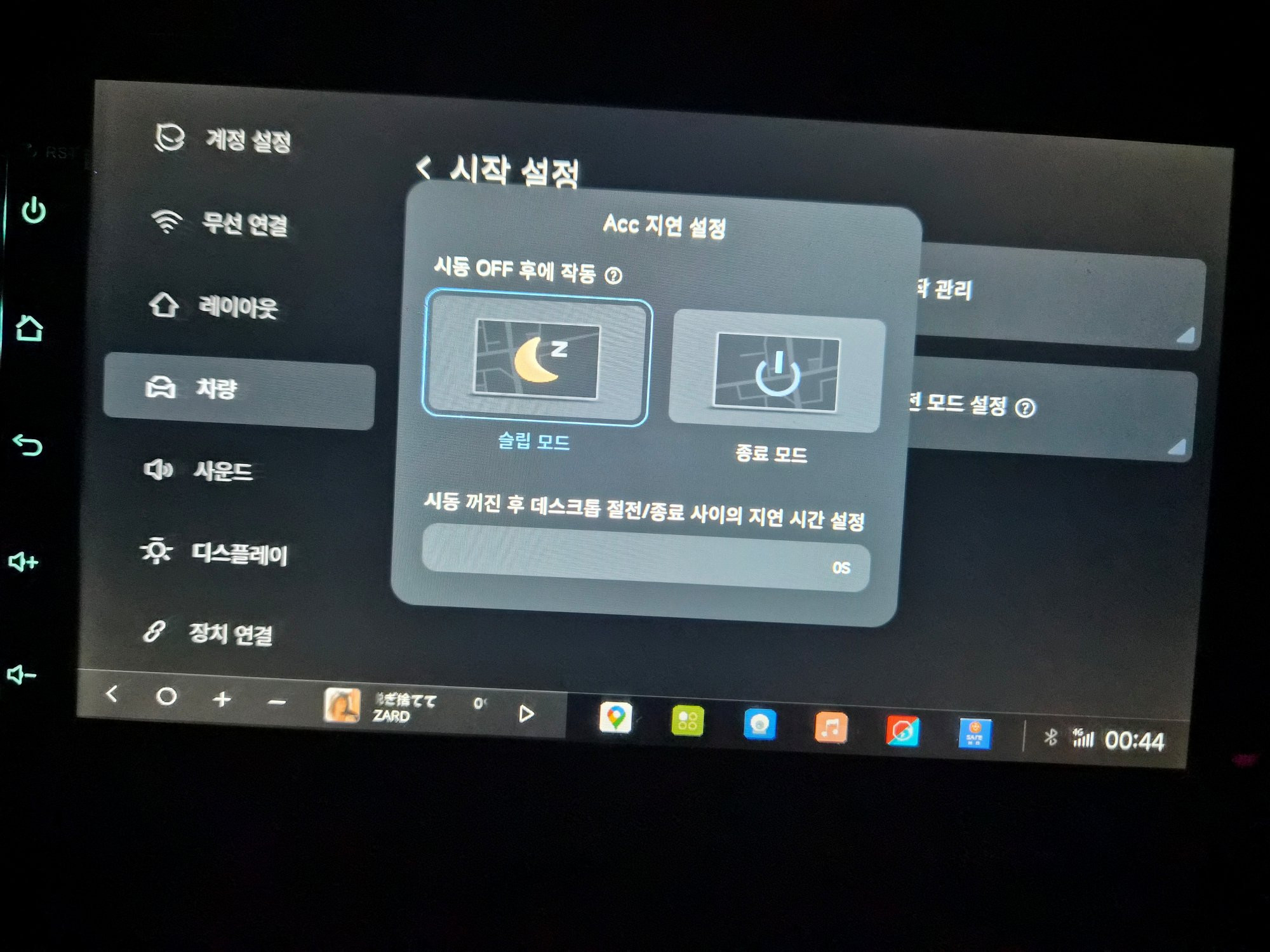 legend1104 acc를 끈 후 amp+ 외부기기 전원이 차단 되어야 하는대 안대는 상태 입니다. 슬립모드만 차단이 되지 않습니다. 두두os 사용전에는 차단 되었습니다. acc를 끈 후 amp+ 외부기기 오디오 전원 기존 안드로이드os (슬립모드 적용off : 슬립모드 미적용 off ) 두두os (슬립모드 적용amp+ on : 슬립모드 미적용 off )