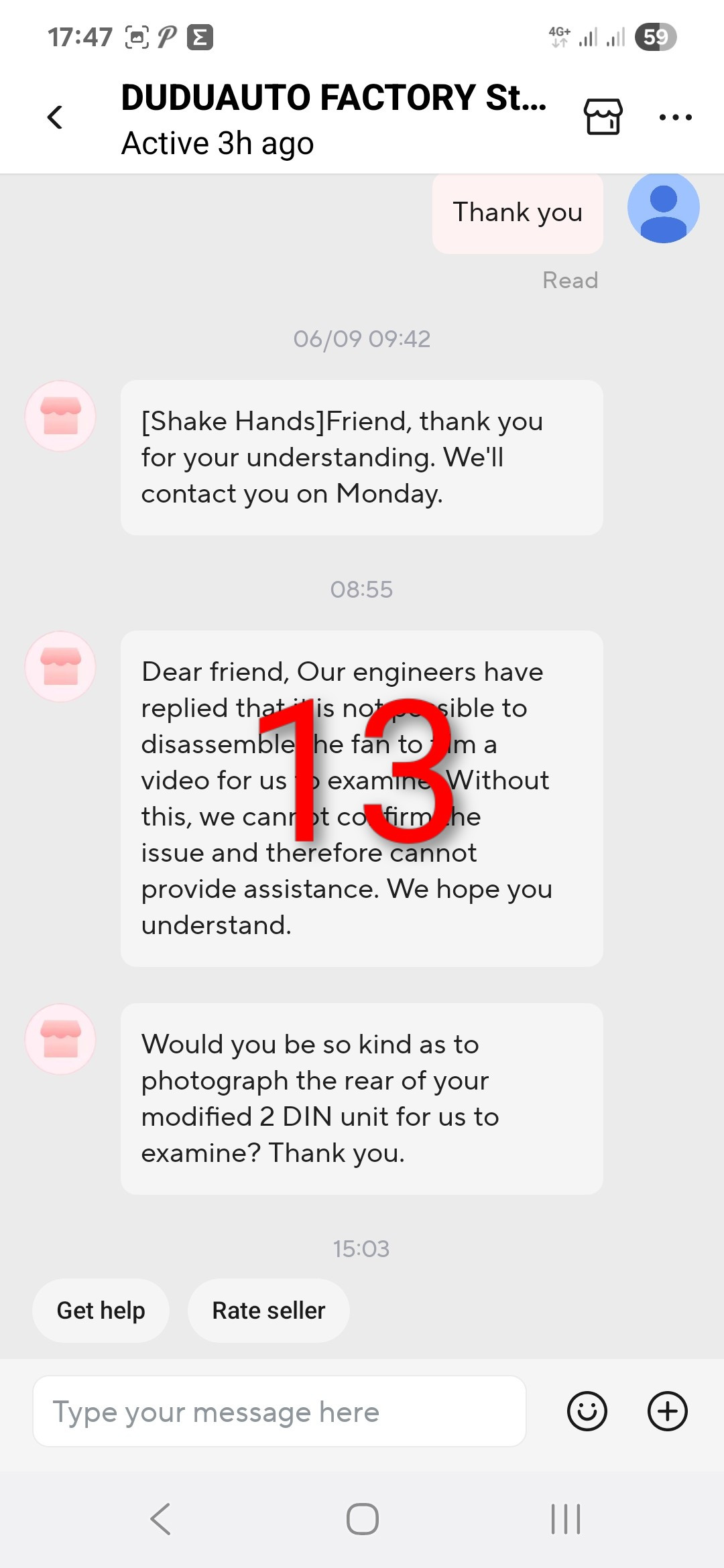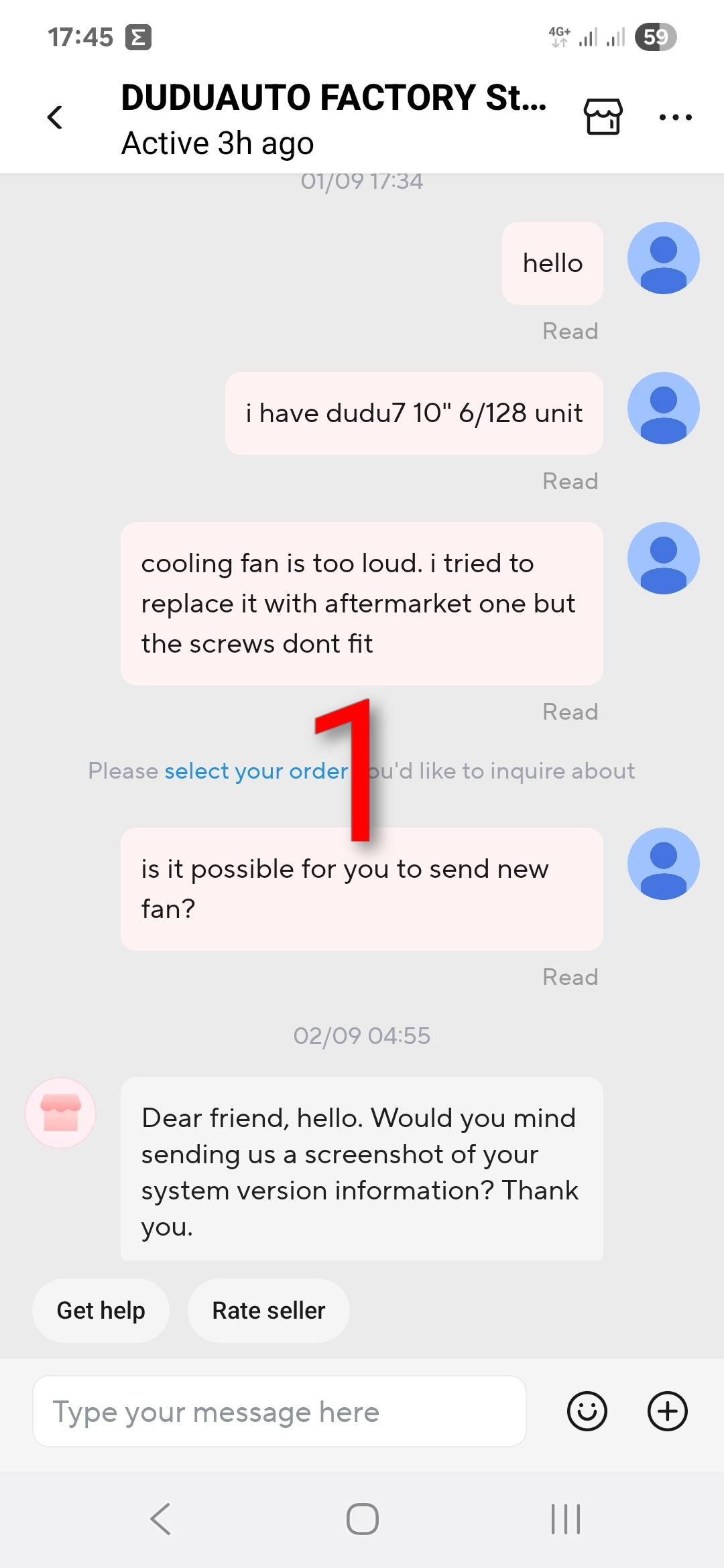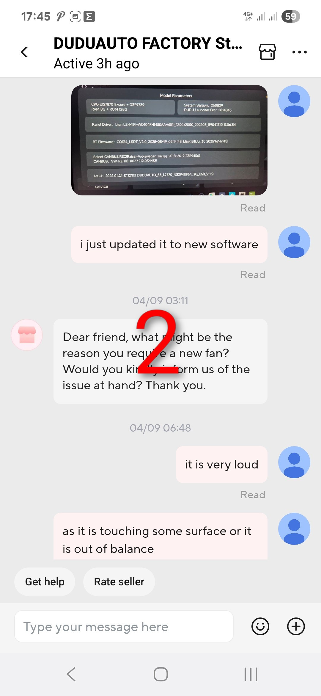 Dusan111 I have issues with noisy cpu fan on my Dudu7 headunit from purchase on. In separate topic in beginning of summer i wrote about it and ask to implement pwm controls in OS. No luck from that wish i went to buy top grade 40x40x10 Noctua fan and when tried to replace it i found out it does not fit as original cpu fan (under enclosure) is without frame and has special feet to screw it down. So i mounted original fan back and tried to ask official seller on Aliex... to send me replacement fan. Now i am spending all together almost 5 hours and nerves just to beg for replacement fan. Questions: Where online can i find compatible cpu fan with click and buy 1 2 3? See attached communication with seller (i wrote sequential numbers to follow the story). Am i realy so hard to understand? 😉 Dusan