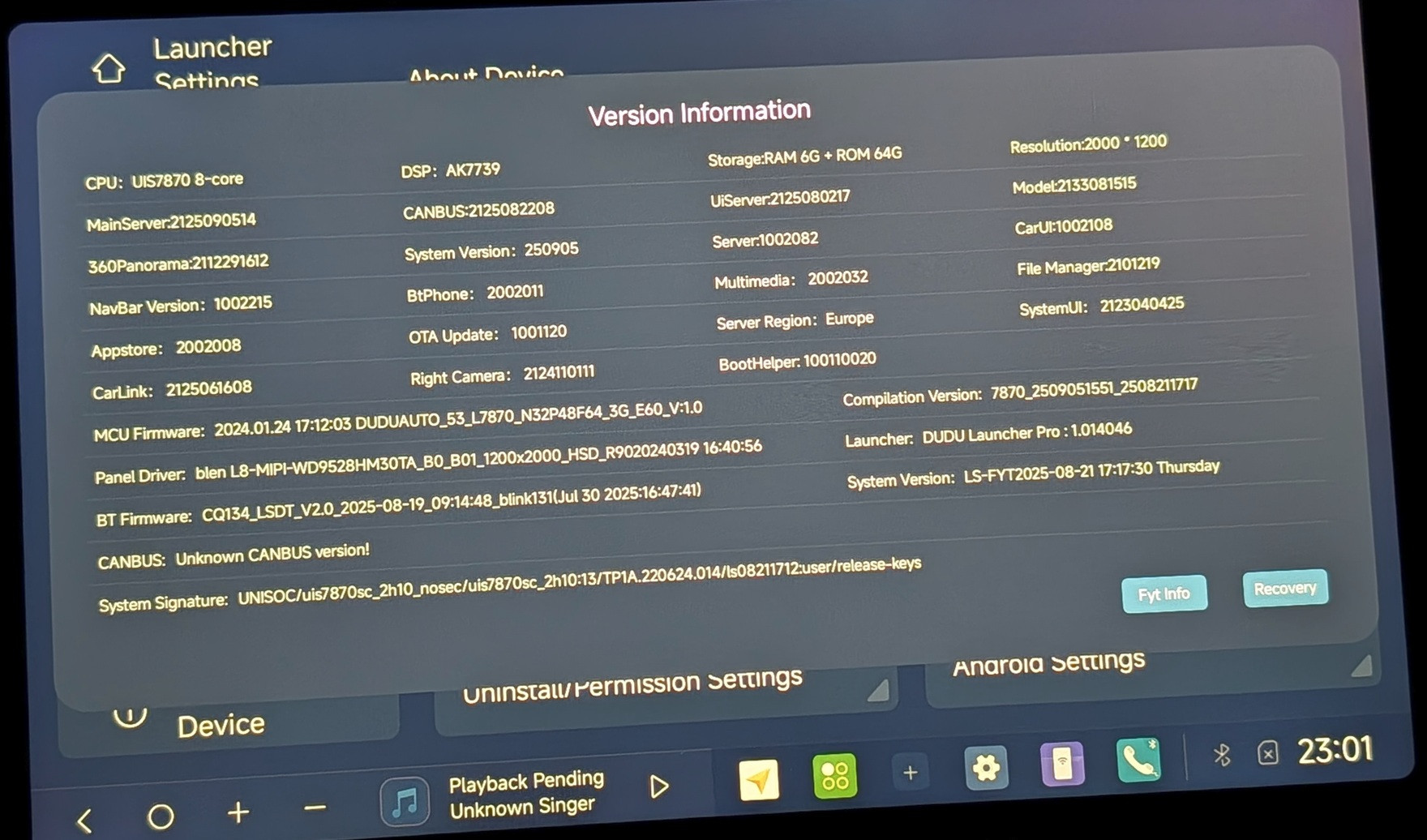 Last week I received my DUDU7 headunit, installed it and immediately updated it to version 250905. Looks awesome.