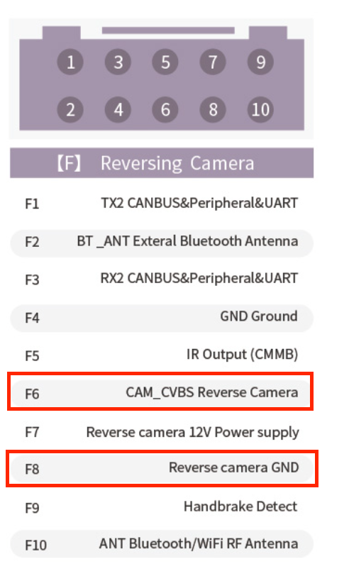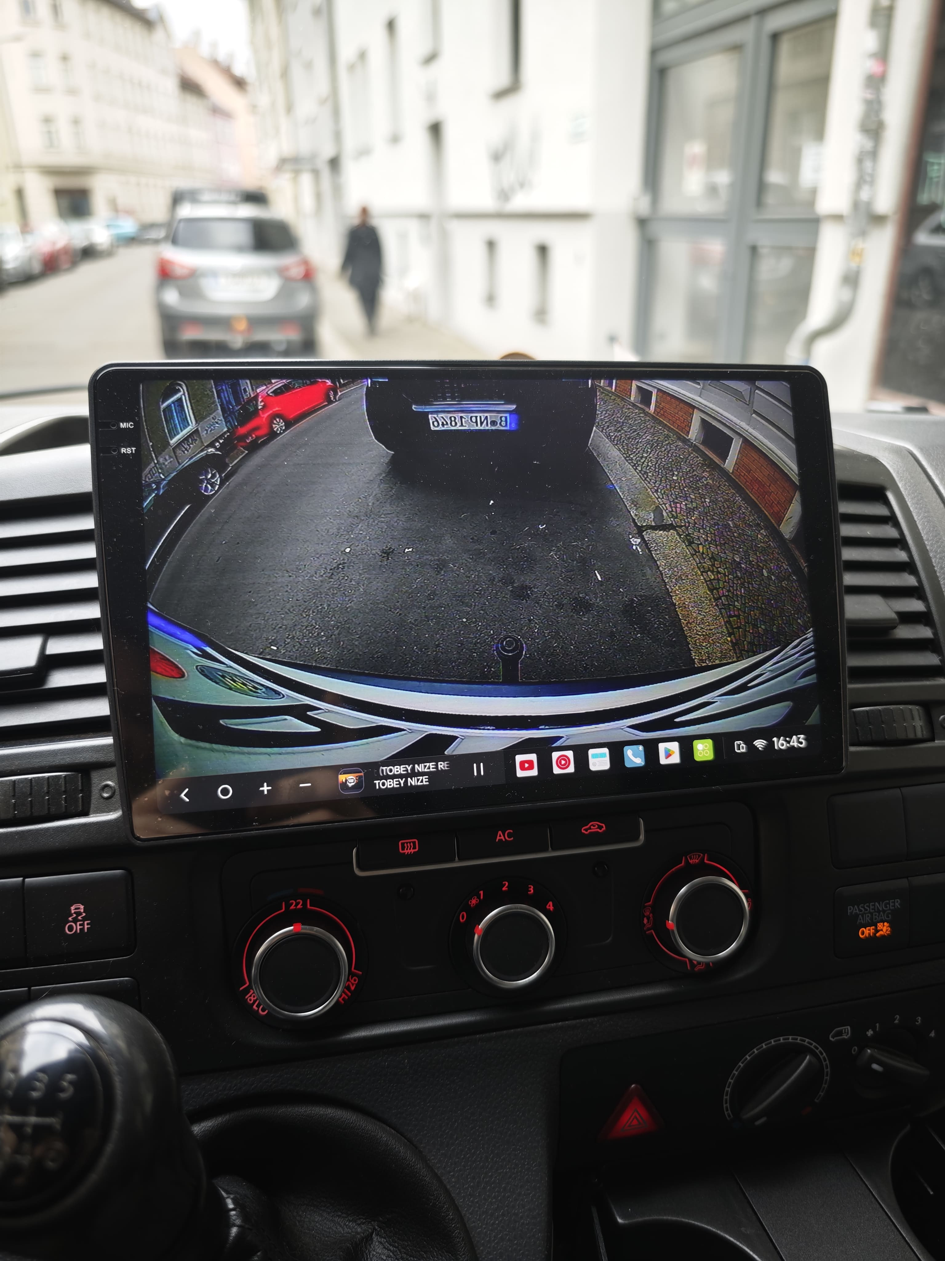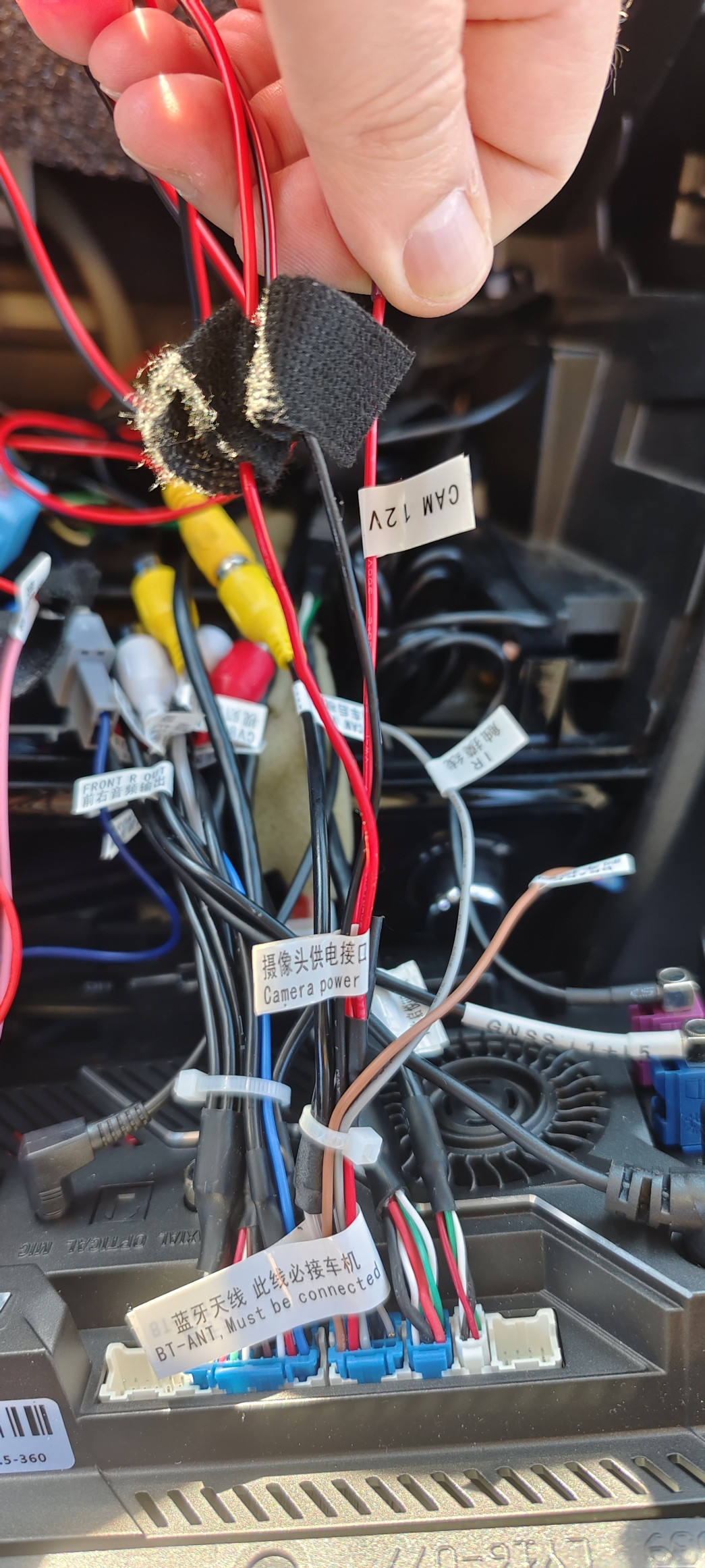 The rear camera is an aftermarket AHD, powered by the F socket and the trigger taken from the original car wiring: