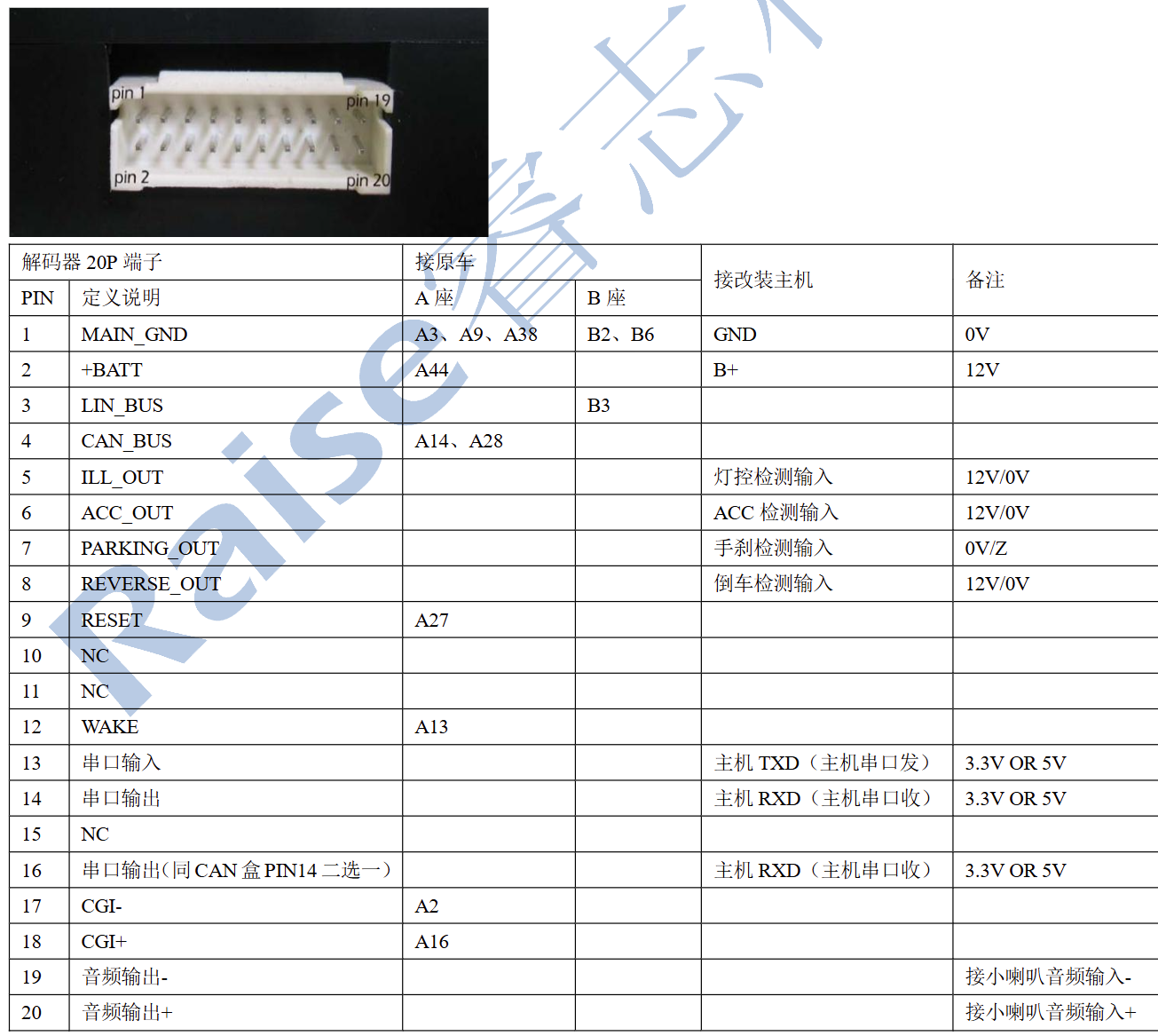 - Raise G-RZ-GM51 works mostly, park sensor works, blinker works, HVAC works a little with mistakes, Car Center control does not work and the illumination from it is heavy blinking, Reverse Gear does not work,