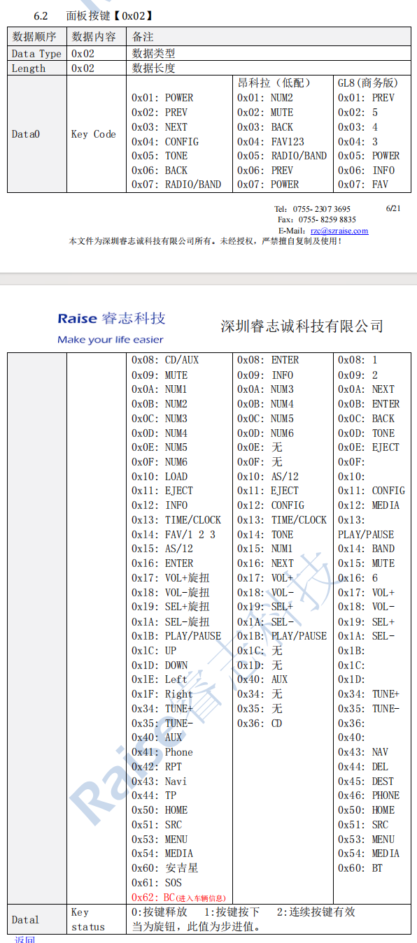- Raise RZ-GM-09, SWC works mostly, park sensor works, blinker works, HVAC works a little with mistakes, Car Center control does not work