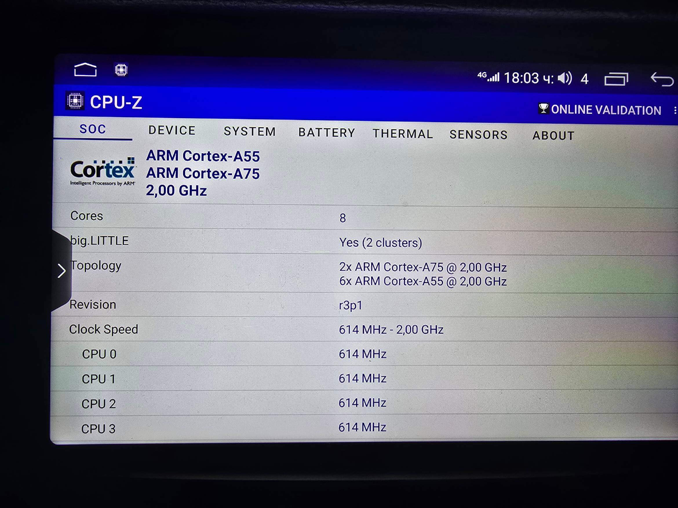 I have checked my device information both from the system settings and using the CPU-Z app.
