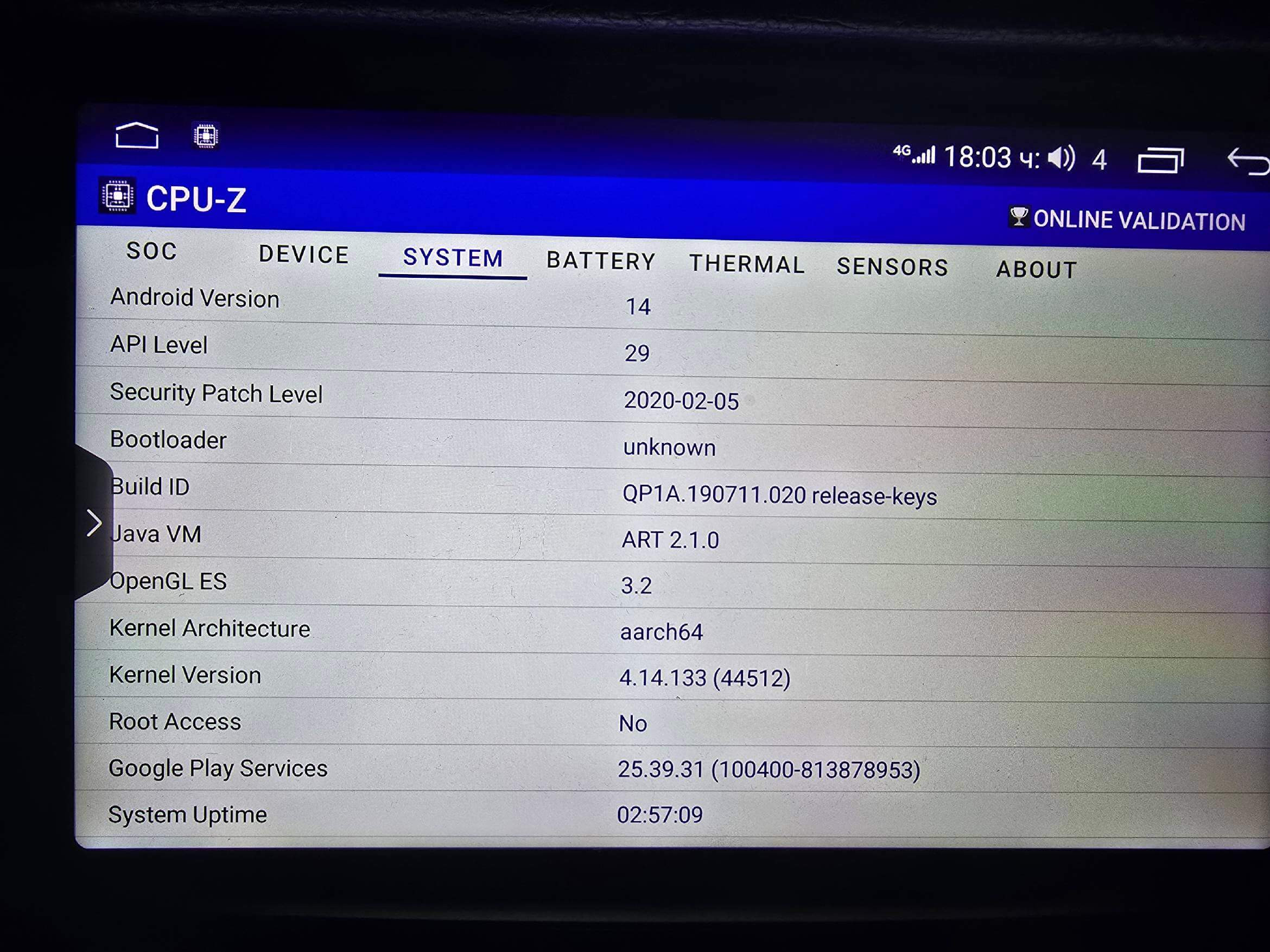 Therefore, it seems that the Android 14 label displayed in the system settings is fake or modified, and the real Android version of the unit is Android 10.