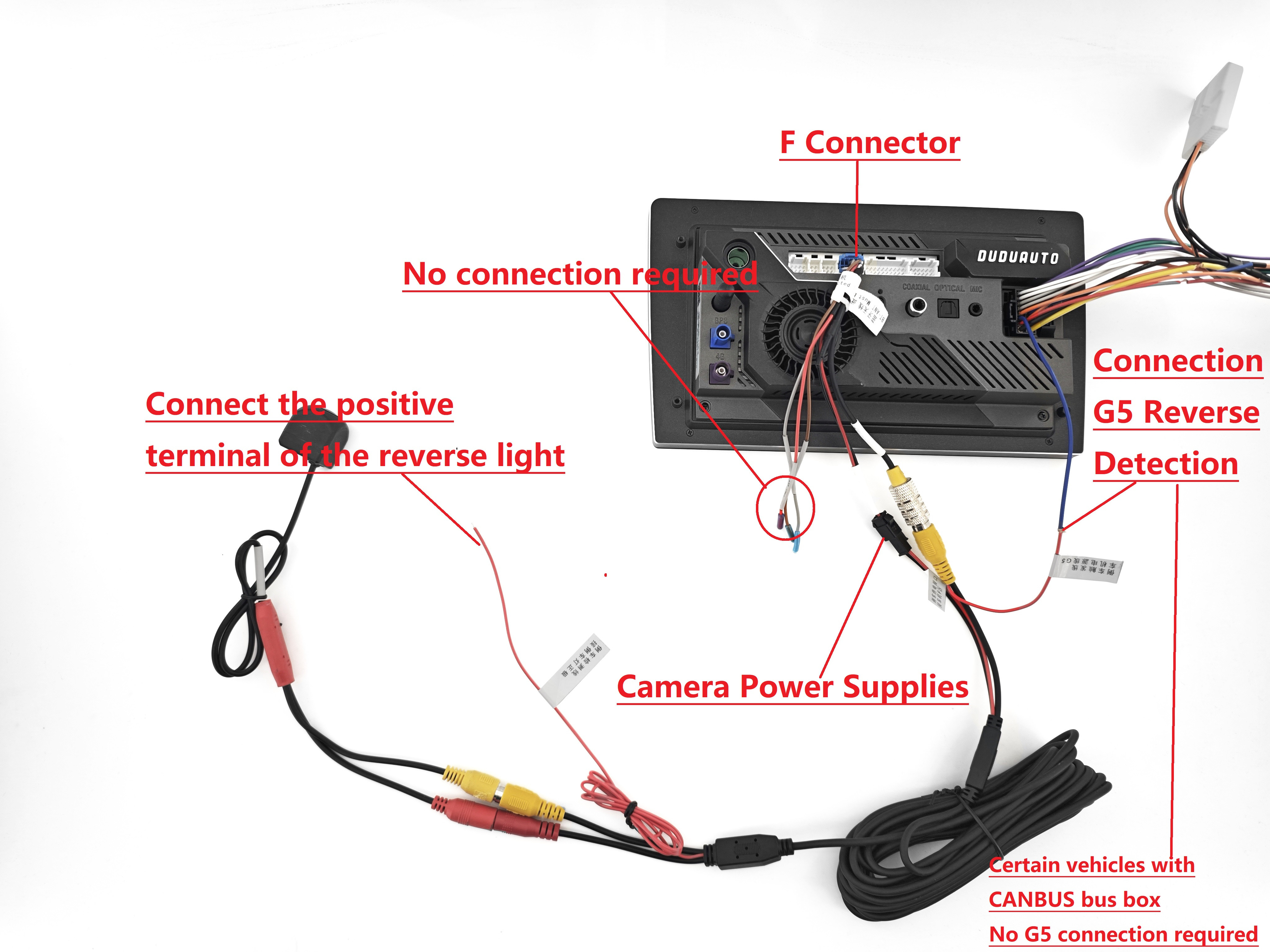 I made connections with G5 and black and red plug. The 12V power connection to the reverse gear, I noticed whether it is on or not, the camera works like this, I posted a photo.