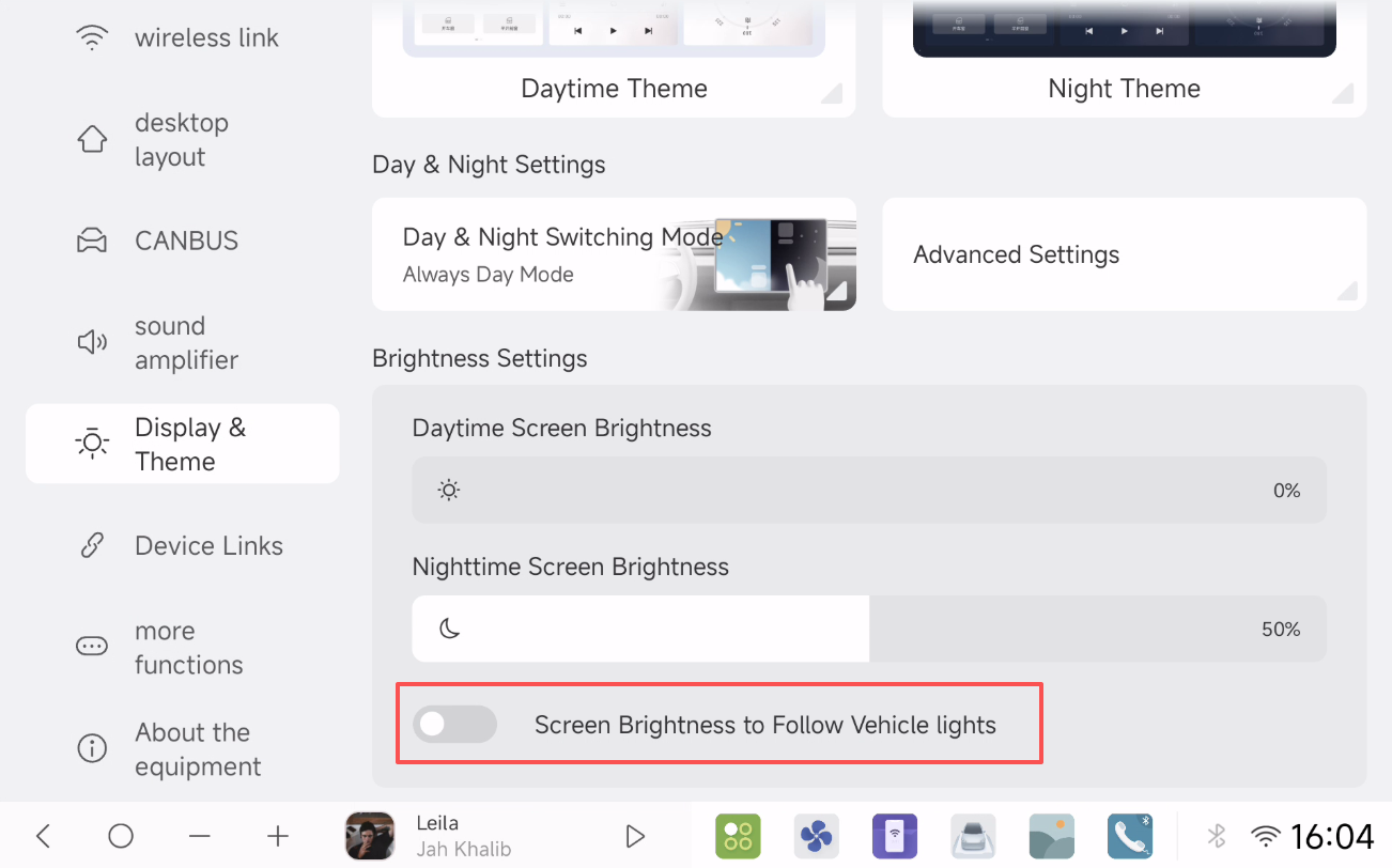 🌓 Always Day/Night Mode with backlight brightness control via car lights